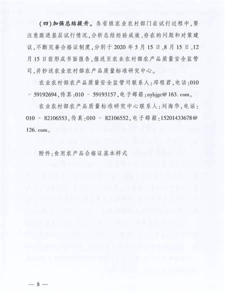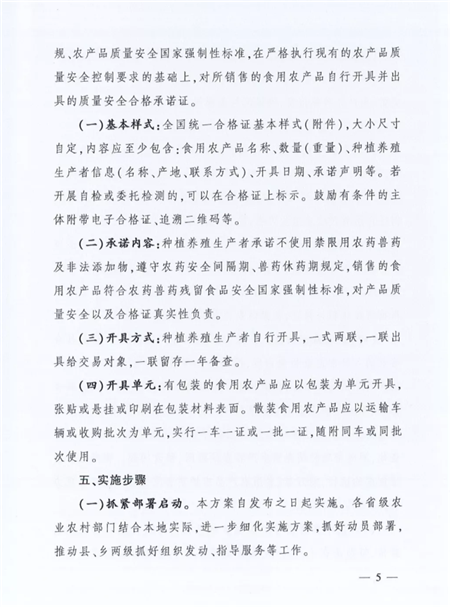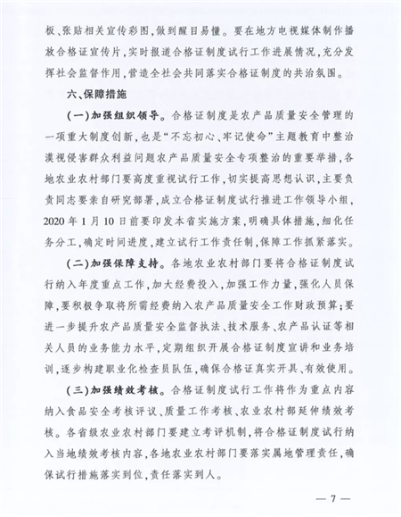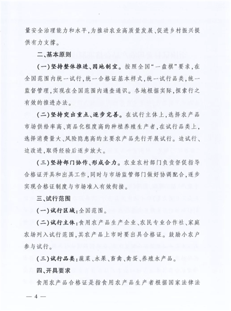 推行農(nóng)產(chǎn)品合格證既是落實(shí)生產(chǎn)經(jīng)營主體責(zé)任的迫切需要,也是構(gòu)建農(nóng)產(chǎn)品質(zhì)量*長效監(jiān)管機(jī)制的現(xiàn)實(shí)需求,更是落實(shí)《農(nóng)產(chǎn)品質(zhì)量*法》的必然選擇,對于促進(jìn)農(nóng)業(yè)產(chǎn)業(yè)健康發(fā)展、確保農(nóng)產(chǎn)品消費(fèi)*、保證人們的身體健康*具有重大的意義。